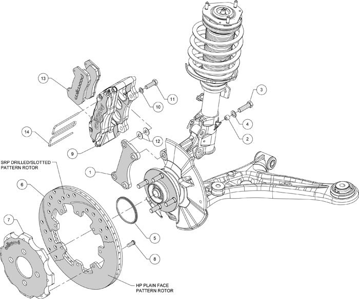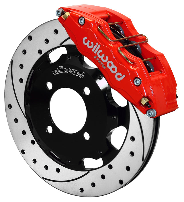 Brand New Wilwood DynaPro 6 Big Brake Kit Featuring 14" Drilled Rotors with Red Calipers For Both Front Wheels (Part #140-11899-DR).