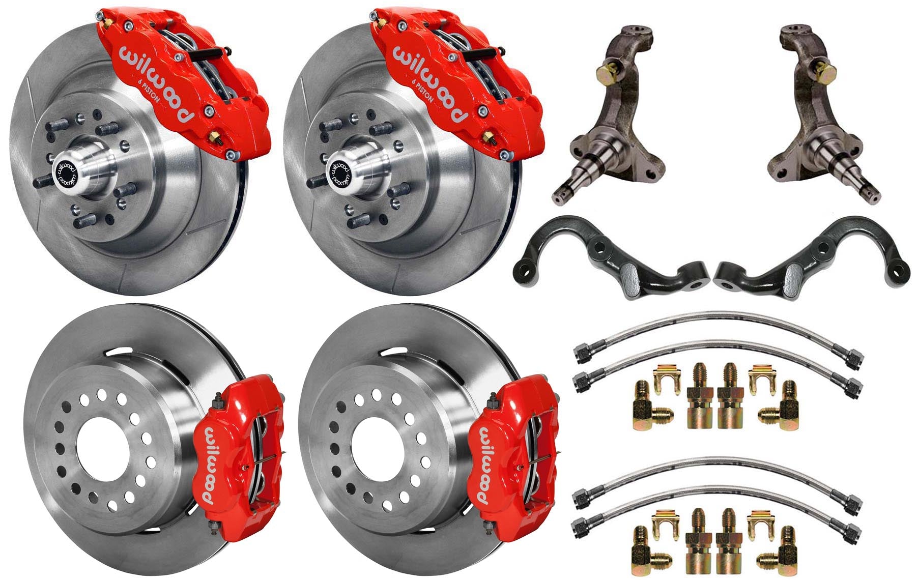 BRAND NEW WILWOOD FRONT & REAR DISC BRAKE KIT WITH STOCK HEIGHT SPINDLES, STEERING ARMS, AND STEEL BRAIDED LINE KITS.