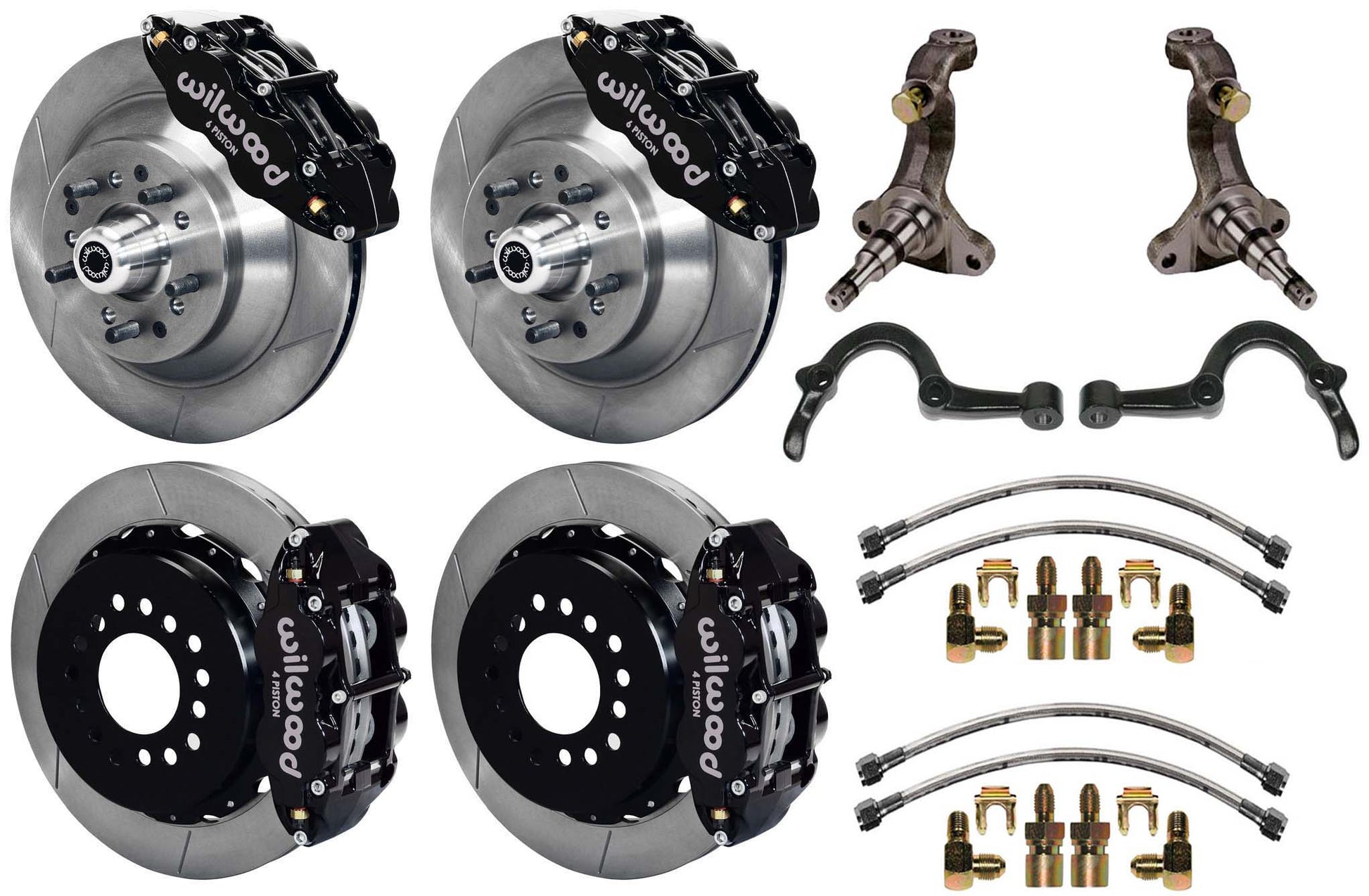 BRAND NEW WILWOOD FRONT & REAR DISC BRAKE KIT WITH STOCK HEIGHT SPINDLES, STEERING ARMS, AND STEEL BRAIDED LINE KITS.