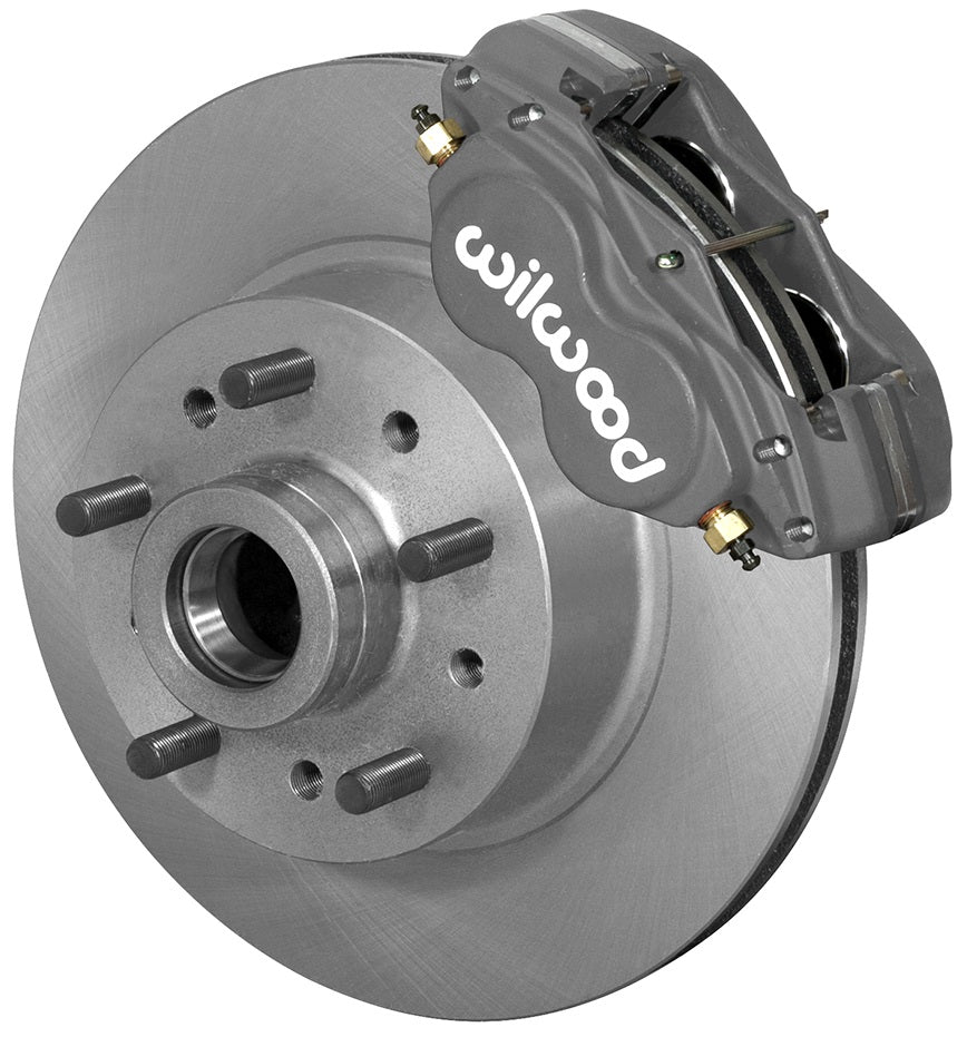 WILWOODS CLASSIC SERIES FRONT DISC BRAKE KITS OFFER AN ECONOMICAL BRAKING SOLUTION FOR MUSTANG II DISC BRAKE SPINDLES. A COMPLETELY NEW KIT DESIGN, FEATURING A LARGE 11.03" X 0.88" ROTOR AND HUB ASSEMBLY. NOW UPGRADED WITH A NEW DESIGN DUAL BOLT PATTERN ROTOR WITH SCREW IN 1/2-20 STUDS, PROVIDING BOTH A 5 X 4.50" AND 5 X 4.75" WHEEL BOLT CIRCLE OPTIONS. THIS CLASSIC SERIES KIT FEATURES THE FDL-M 4-PISTON FORGED ALUMINUM DYNALITE CALIPERS. KITS ARE EASILY OPTIONED TO SUIT THE BRAKING REQUIREMENTS AND STYLE PREFERENCES FOR A DAILY DRIVER OR THE MOST DISCRIMINATING SHOW ENTHUSIAST. INTENDED VEHICLE APPLICATIONS REQUIRE NO MODIFICATIONS FOR INSTALLATION. FDL-M 1 PIECE KITS CAN BE USED WITH EITHER MANUAL OR POWER BOOST MASTER CYLINDERS.