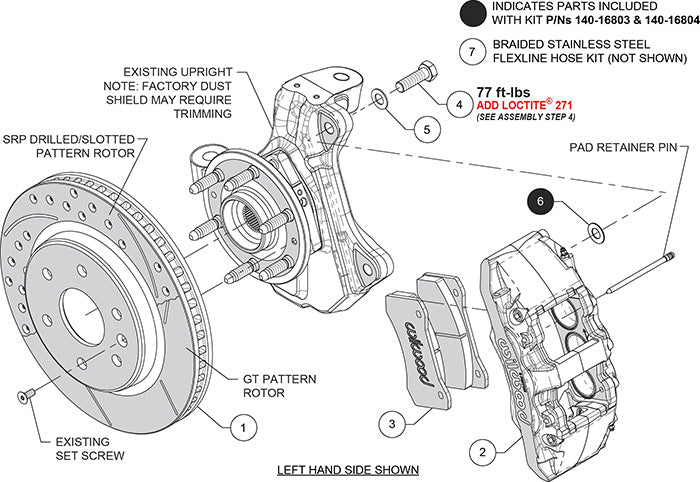 Brand New Wilwood AERO6-DM Brake Kit Featuring 13.38" Drilled Rotors & Red Calipers For Both Front Wheels (Part #140-16805-DR).