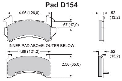 BRAKE PADS,D-154 E,GM METRIC,(4)