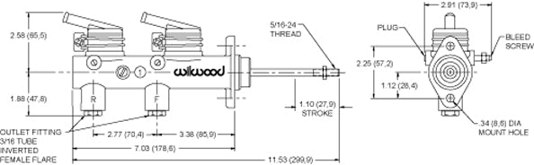 TANDEM MASTER CYLINDER,1" REMOTE,SINGLE PEDALS