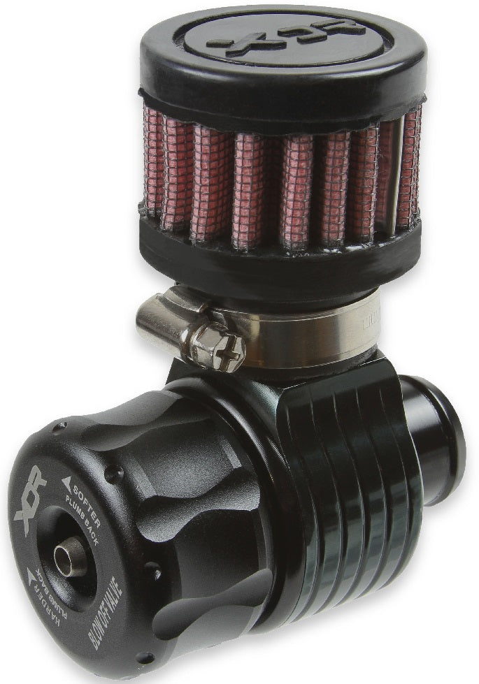 The pressure release point is adjustable via a knob on the top so you can either extend the swoosh sound, or a quick short burst of air. Not a fan of the swoosh sound, you can also install the blow-off valve to recirculate like the factory valve rather than blow off pressure into the atmosphere. The valve is constructed from CNC machined aluminum, then black anodized and features the XDR logo laser-etched on top of the valve.