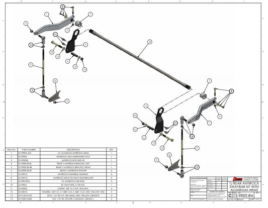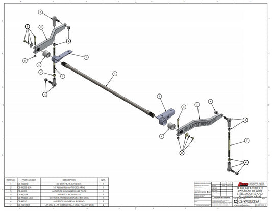 ANTIROCK FRONT SWAY BAR KIT,ALUMINUM,TJ/LJ