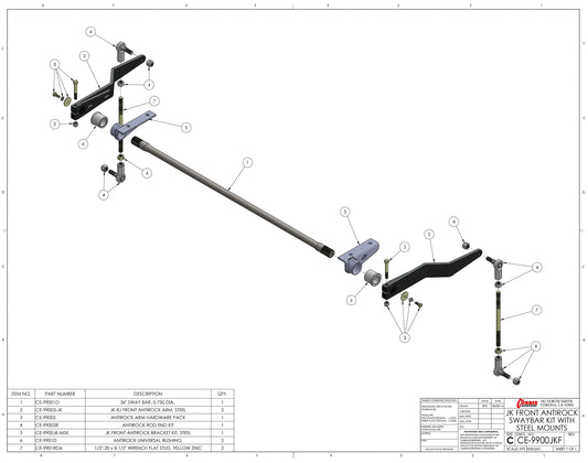 ANTIROCK FRONT SWAY BAR KIT,STEEL,JEEP JL